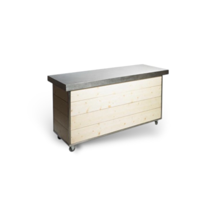 Garden Buffetbar 200 cm huren? Sfeervolle houten buffetbar voor tuinfeesten, borrels of outdoor events. Stevig en decoratief, inclusief op- en afbouw. Levering in Haarlem en de Randstad.