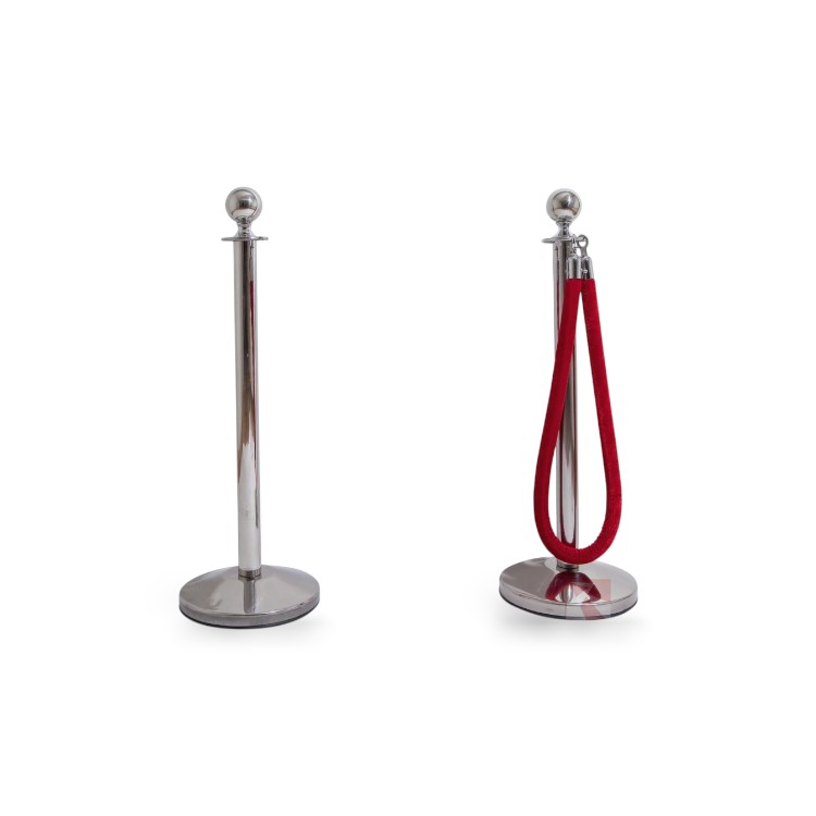 Chromen afzetpaaltje huren? Luxe paal voor gebruik met rode of zwarte afzetkoorden. Perfect voor stijlvolle entrees of afzettingen. Te huur in Haarlem & de Randstad.