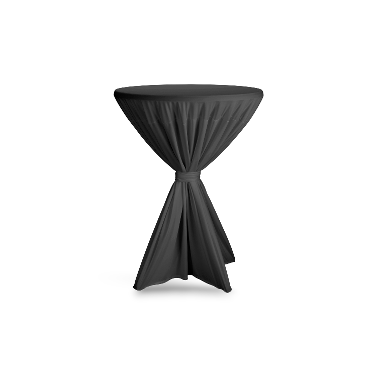De Statafelhoes Antraciet met strik geeft statafels een elegante uitstraling. Perfect voor borrels, feesten en zakelijke events.
