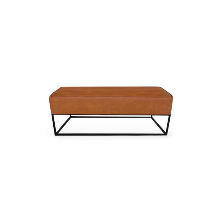 Bruine lounge poef op stalen onderstel.