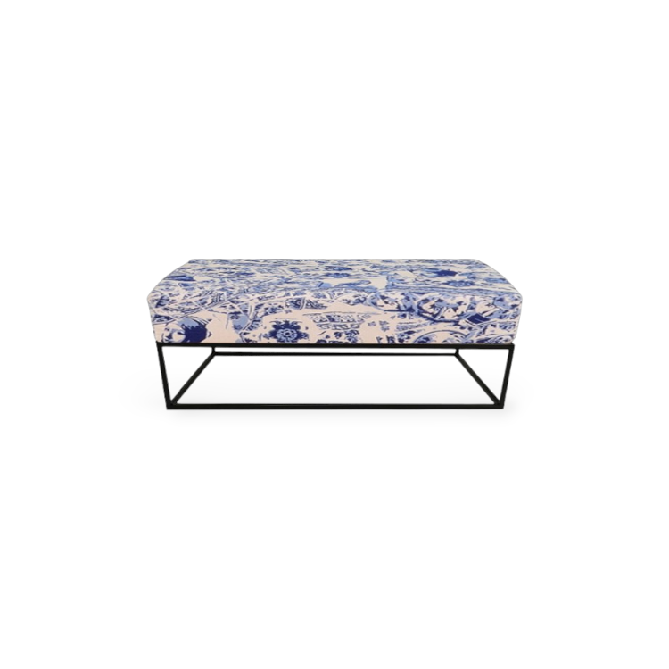 Delftsblauwe ounge poef op stalen onderstel.