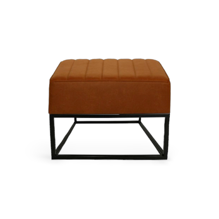 Bruine lounge poef op stalen onderstel.