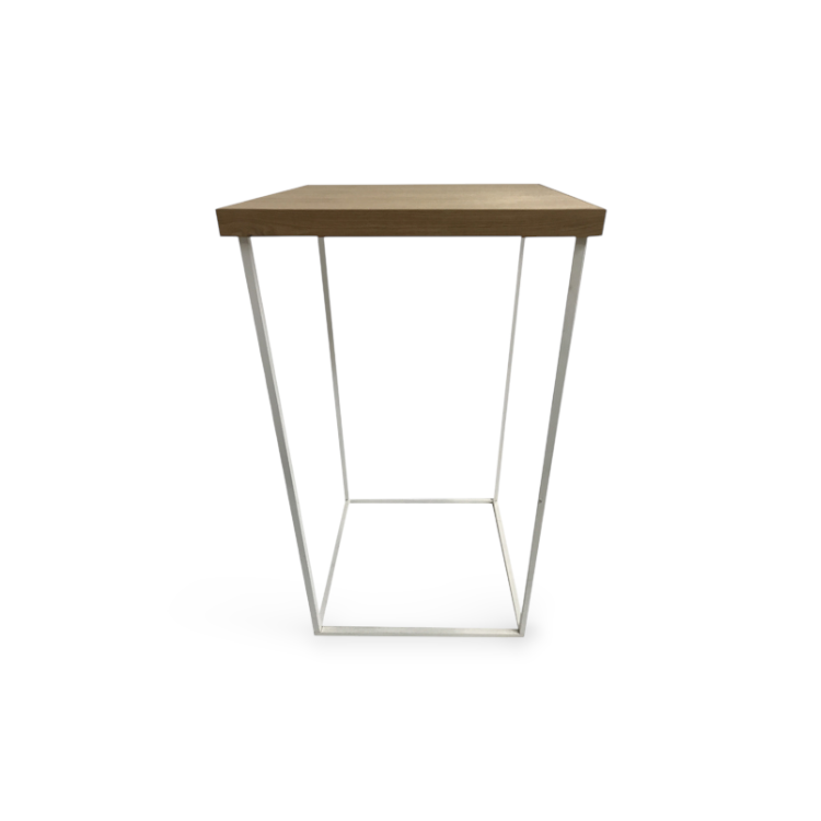 Statafel met wit stalen frame incl. massieve eikenhouten blad