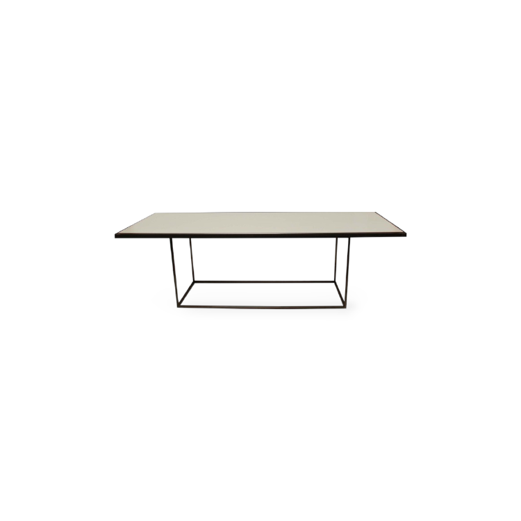 Deze stalen dinertafel met wit blad is modern, strak en stijlvol. Perfect voor formele diners, presentaties of designgerichte evenementen.