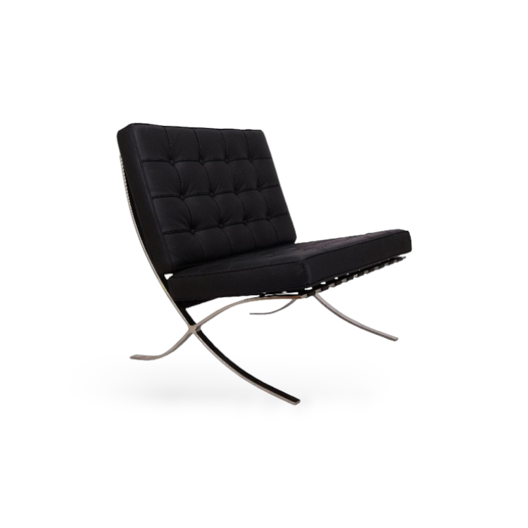 Het sterke stalen frame zorgt voor stabiliteit, terwijl de royale kussens een comfortabele zit bieden. De Barcelona Chair Black combineert moeiteloos met andere lounge-elementen zoals velvet poefs, lage tafels of donkere decoratie voor een stijlvolle, professionele uitstraling.